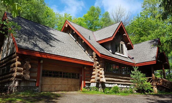 room downstairs, 2 full baths, a great room, 3 fireplaces, and
